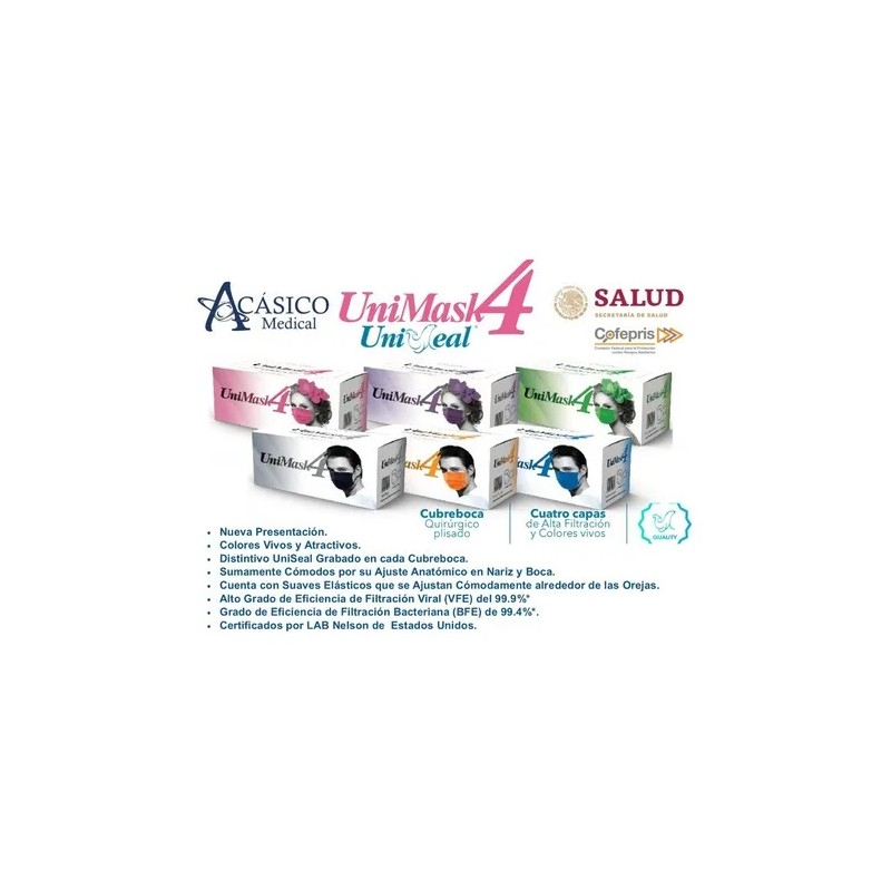 Cubrebocas Uniseal Con Sello 50 Pzas Azul Certificado