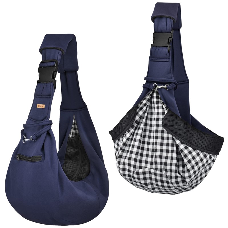 - 🐾Reversible Use & Padded - CUBY adjustable dog slings for small dogs are made of Double layer fabric, can be used on both sides, the outer layer is a solid color cotton fabric, and the inner layer is a plaid fabric, which is soft, skin-friendly and breathable, and will not make your pet feel uncomfortable. And Upgrade padded shoulder strap makes your shoulders less tired, free your hands, and take your pet out with ease.