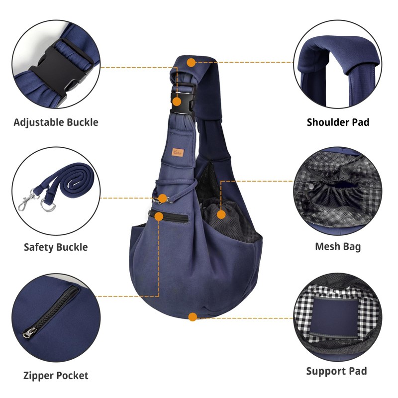 Cuby Adjustabe Dog Cat Sling Padded Hard Bottom Pet Carrier Sling Soft Carrying Puppy Bag for Small Dogs Cats Outdoor Travel(Upgrade Dark Blue)