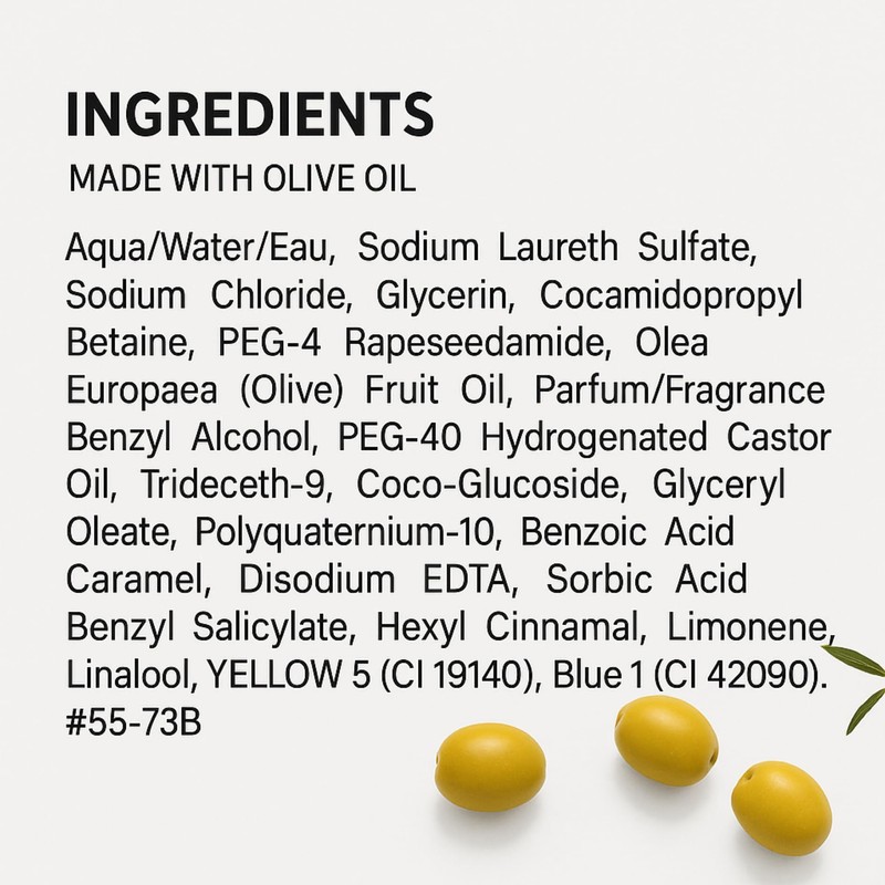 - Olive Oil Enriched – Formulated with first cold-pressed olive oil to help cleanse and hydrate skin.
