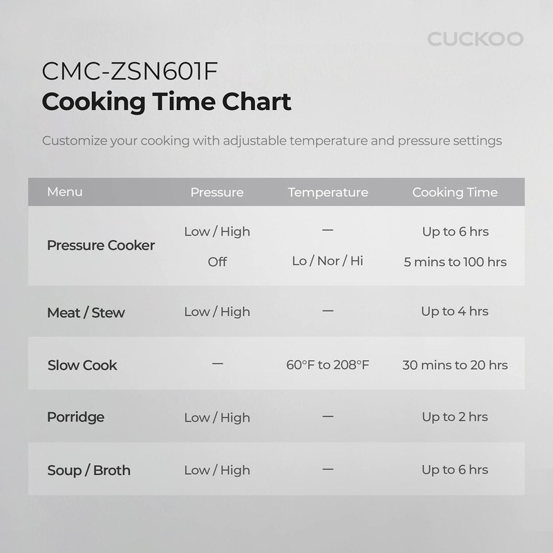 - TRUSTED KOREAN BRAND: Cuckoo, internationally known for superior quality and standards, ensures perfect cooking with every use. Our safety features ensure the safety of you and your loved ones.