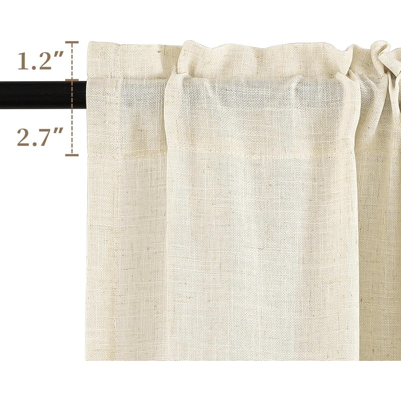 - 【Standard Size】The package contains 2 pieces of linen semi-transparent pencil pleat curtains. Each short curtain measures 48" wide x 36" drop. The curtain head comes with a rod sleeve with an inner diameter of 7cm, which is easy to install and can be directly inserted into a standard curtain rod. ✨ Please note that they are kitchen curtains (the curtain is shorter)✨