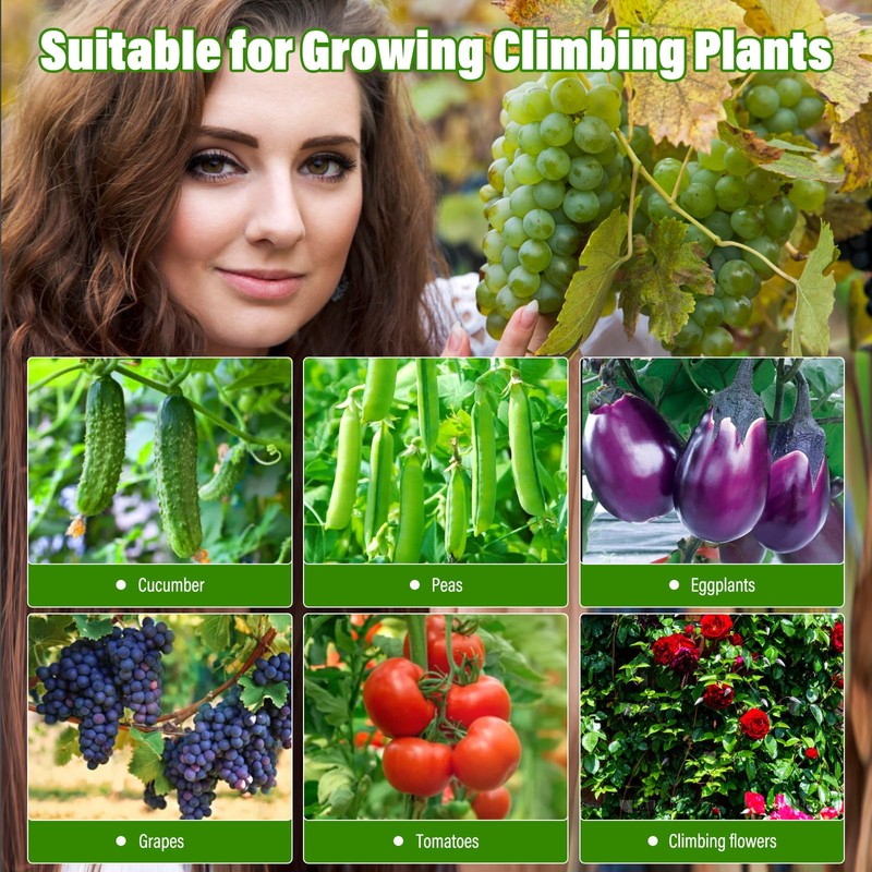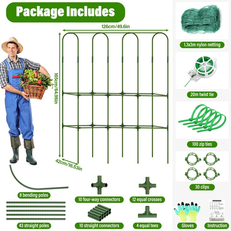 - ๐๐๐ซ๐๐๐ง ๐๐ฎ๐๐ฎ๐ฆ๐๐๐ซ ๐๐ซ๐๐ฅ๐ฅ๐ข๐ฌ-The garden trellis is 16.5in wide and occupies 49.6in down the length of the bed. The approximately 64.5-inch panels stand in a tepee style (triangle) so that two sides are exposed for an active growing area. Twist ties, clips, ties, nylon garden netting, clear instruction are included for your convenience.