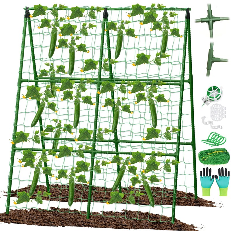 - Optimized Growth Conditions: Maximize the potential of your cucumber plants and other climbing vegetables with our thoughtfully designed trellis. The A-Frame structure, coupled with the special Equal Tee and Equal Cross design, ensures that your cucumbers, beans, tomatoes, and other climbing plants receive adequate sunlight, air circulation, and support. Create an ideal environment for healthy growth with our reliable and adaptable garden trellises.