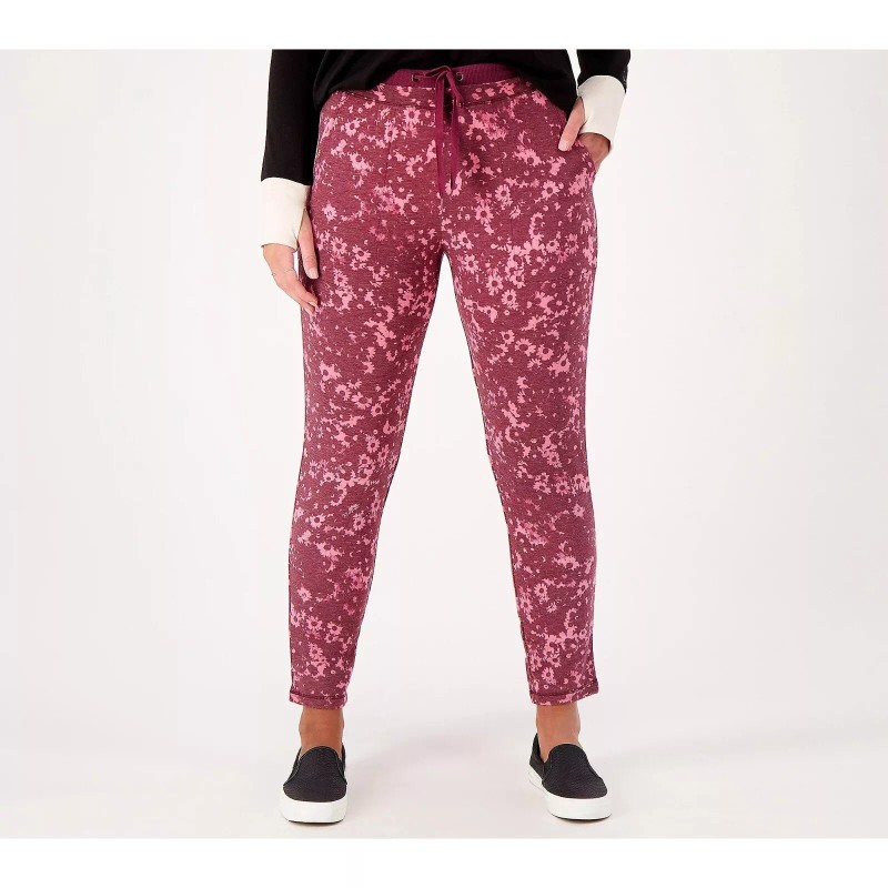 Cuddl Duds Petite Comfortwear Slim Pants Womens Large Red Stamp Floral Boho NEW