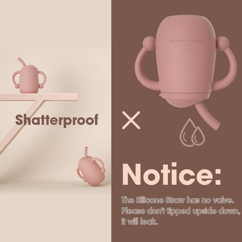 - LEAKPROOF, SHATTERPROOF: The liquid won't come out through the lid, it can keep the damage to a minimum and keep your child’s clothes and the floor nice and clean. The silicone training cup is shatterproof as well, it won't break when dropped