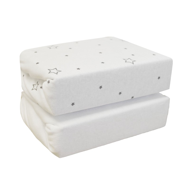 Cuddles Collection Cot Bed Jersey Fitted Sheets (Pack of 2, Grey Stars on White)