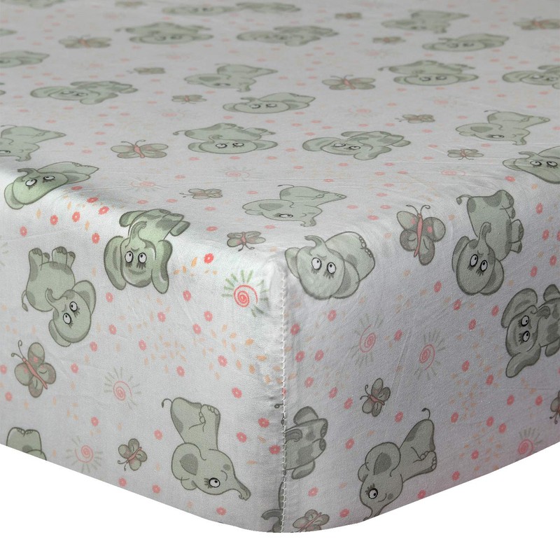 Cuddles & Cribs 1 Pack GOTS Certified Organic Cotton Fitted Crib Sheet - Happy Elephant