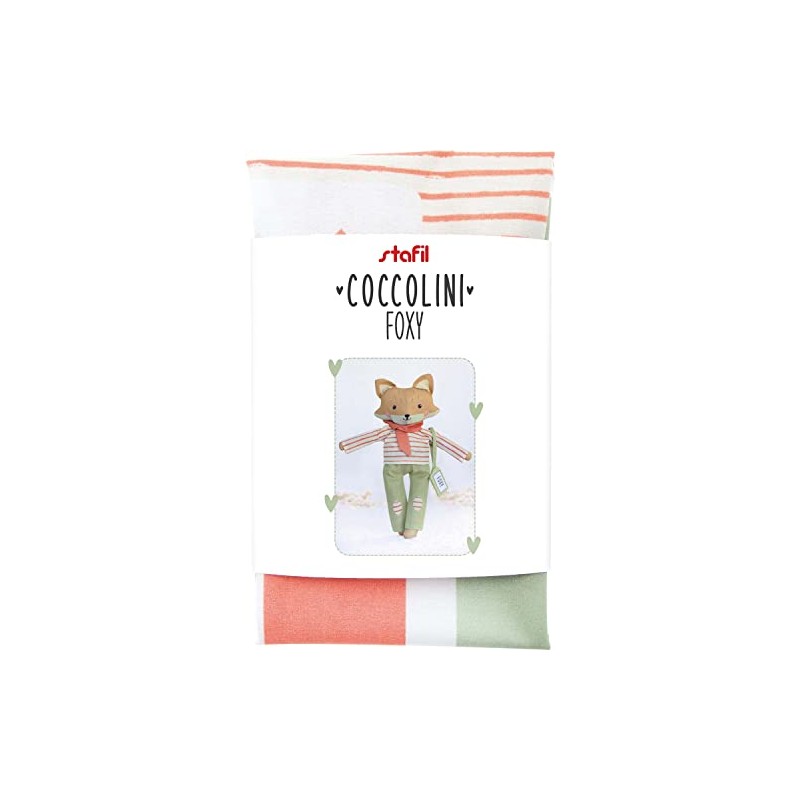 Cuddly toy sewing kit Coccolini "Foxy" with a finished size of approx. 45 cm. All parts of the fabric cut are cut out, sewn together, filled with filling material and sewn together accordingly. A QR code on the packaging leads to a detailed step-by-step video that helps with the implementation. A little skill on the sewing machine and the new favourite cuddly toy is ready. The included label can be personalised with your own name.