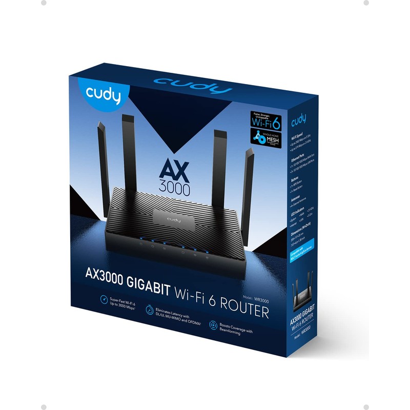 Cudy New AX3000 Dual Band Wi-Fi 6 Router, Mesh Wi-Fi Router, 802.11ax Internet Router, 160MHz, MU-MIMO, OFDMA, WireGuard, OpenVPN, WPA3, WR3000