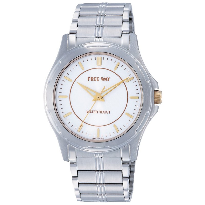 Cue & Cue AA93-4005 Analog Solar Freeway Waterproof Metal Band White Dial Free Way Men's Silver, Silver, watch