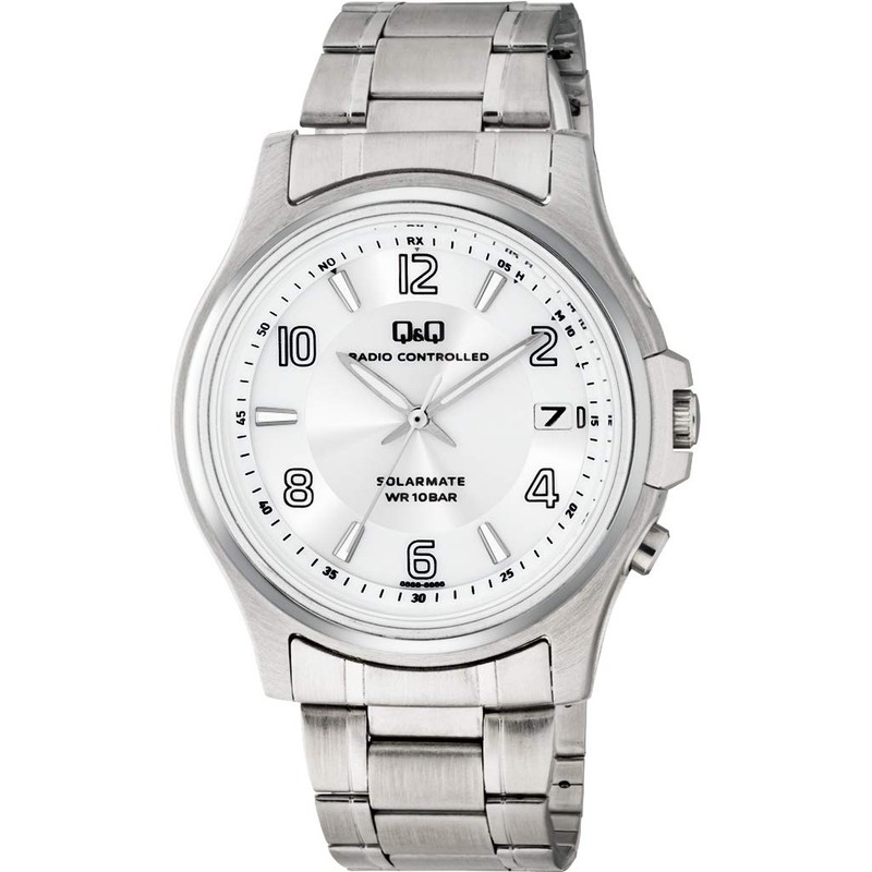 Cue & Cue HG18-204 Men's Wristwatch, Analog, Radio, Solar, Waterproof, Date Display, Metal Band, White, Dial, white, Bracelet Type