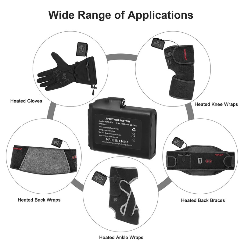- CUEHEAT 7.4V Heated Glove Liners Rechargeable Lithium Polymer Battery, For DC 3.5mm x 13.5mm Port - Heated Glove, Mitten, Sock