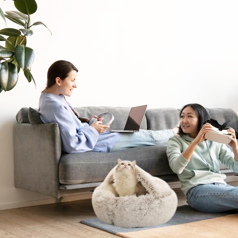 - Fluffy cat bed: provides semi-closed coverage and a sense of security. It is breathable, cosy and a perfect cat cushion for cats and small dogs / puppies. Plush is very comfortable and skin-friendly. PP cotton is breathable, soft and elastic