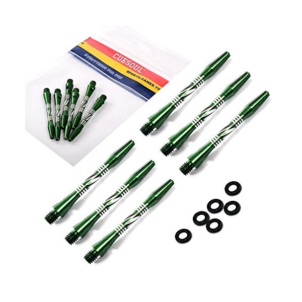 CUESOUL 6-Piece 2BA Medium Aluminum Dart Shaft with O'Ring Green