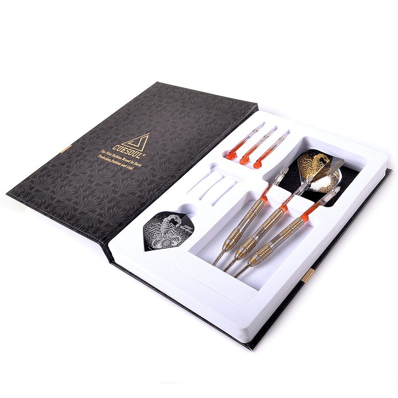 CUESOUL Black Scorpion 24g Tungsten Steel Tip Dart Set,Barrel with Golden Titanium Coated Finished