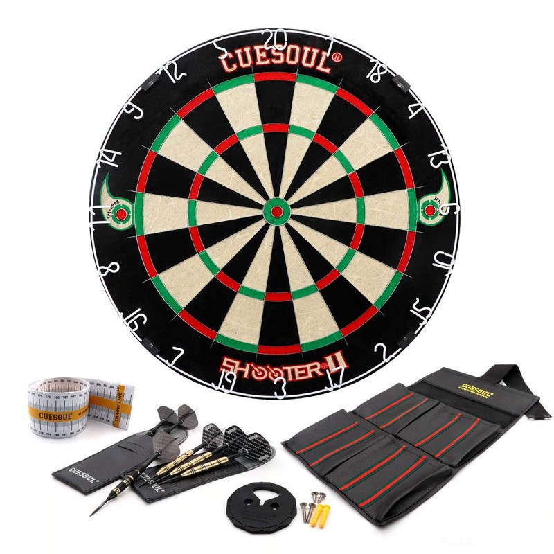 CUESOUL Shooter-II TRI-Eyes Official Size Sisal Bristle Dartboard Set with Extra Steel Tip Darts 6 Pack Without Surround.
