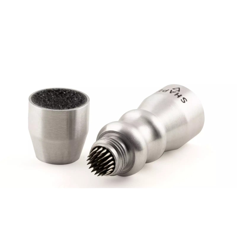 Cue Tip Aerator – The purpose of the aerator is to break up the surface of the tip when it is new or it has been compressed after long-term use. You must unscrew the Bowtie Tip Tool to reveal the aerator pins. Gently roll the aerator over the tip piercing the tip with small pinholes so it will hold more chalk.