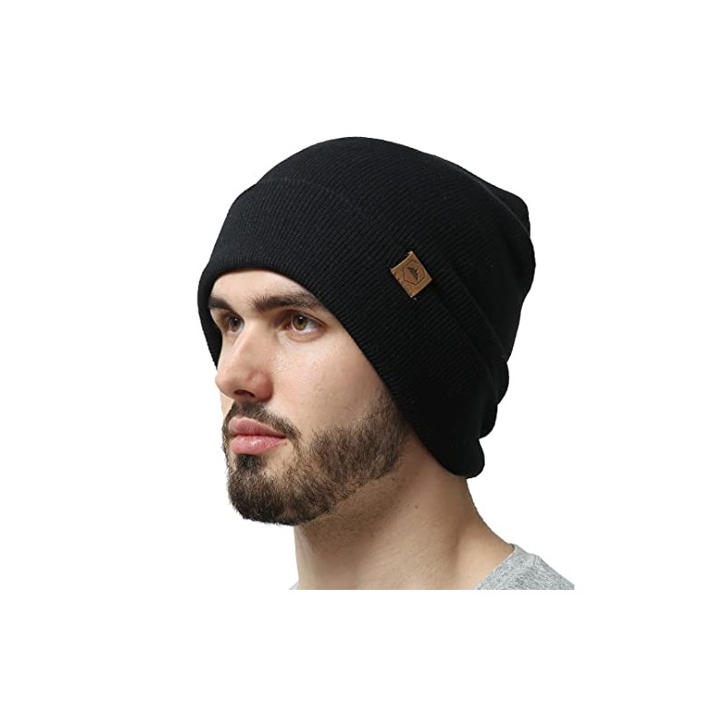 Cuffed Knit Beanie Winter Hat for Men and Women - Warm, Soft & Stretchy Daily Ribbed Lightweight Toboggan Cap Black