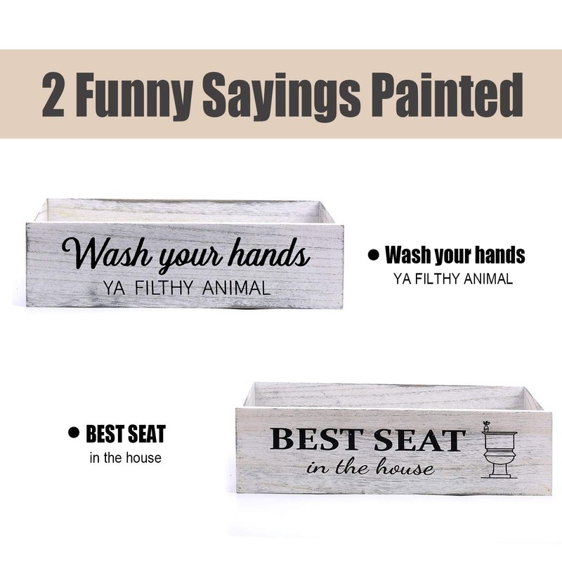 - 【TWO KINDS OF FUNNY SIGNS】- Printed with two kinds of funny signs, Wash Your Hands on one side and Best Seat in the house on the other, the farmhouse rustic box is in unique design that could bring funny and relaxing feeling for room atmosphere. A good way to make the first-visiting guest laugh happily, thinking that you were cheerful and outgoing, feeling relaxed and getting closer