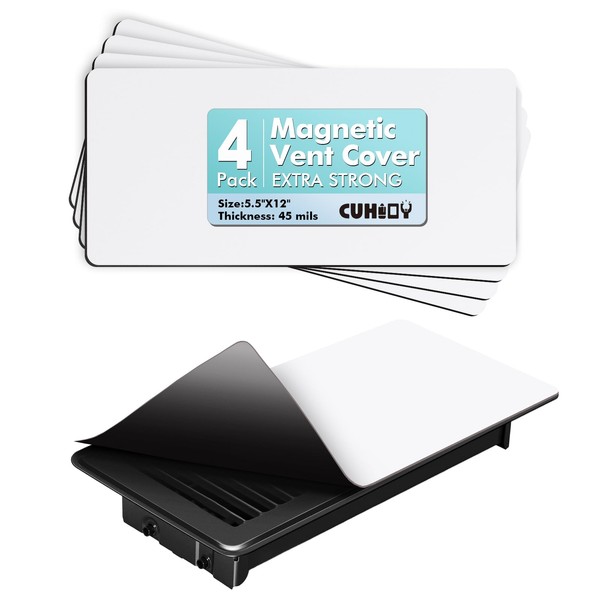 CUHIOY Magnetic Vent Cover, 5.5 x 12 inches, 4-Pack, Wall and Ceiling Air Vent Blockers
