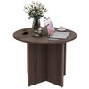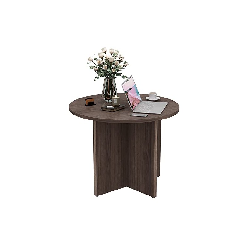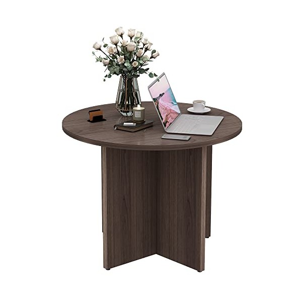 CuHome Round Conference Table, 35.4" Small Commercial Meeting Table for Business, Office Table with X-Shaped Wood Base (Walnut)