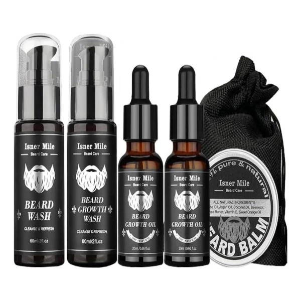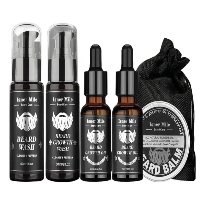 5 en 1 Kit Cuidado Barba - Recambio, Incluye Champú para Barba, Acondicionador para Barba, Aceite para Barba*2 y Bálsamo para Barba.