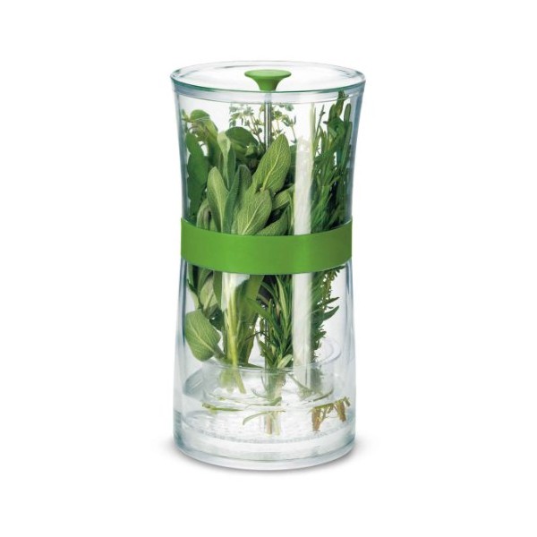 Preserve and elongate the life of your herbs, asparagus and other vegetables with Cuisipro's herb keeper. An innovative device, the keeper immerses the stems in water to elongate life span, and hold herb bunches together for quick access. The modern design uses a transparent container so you can always see what is being kept inside. Its small design and nature allow it to easily fit inside the refrigerator, and the tray is removable for quick cleaning.