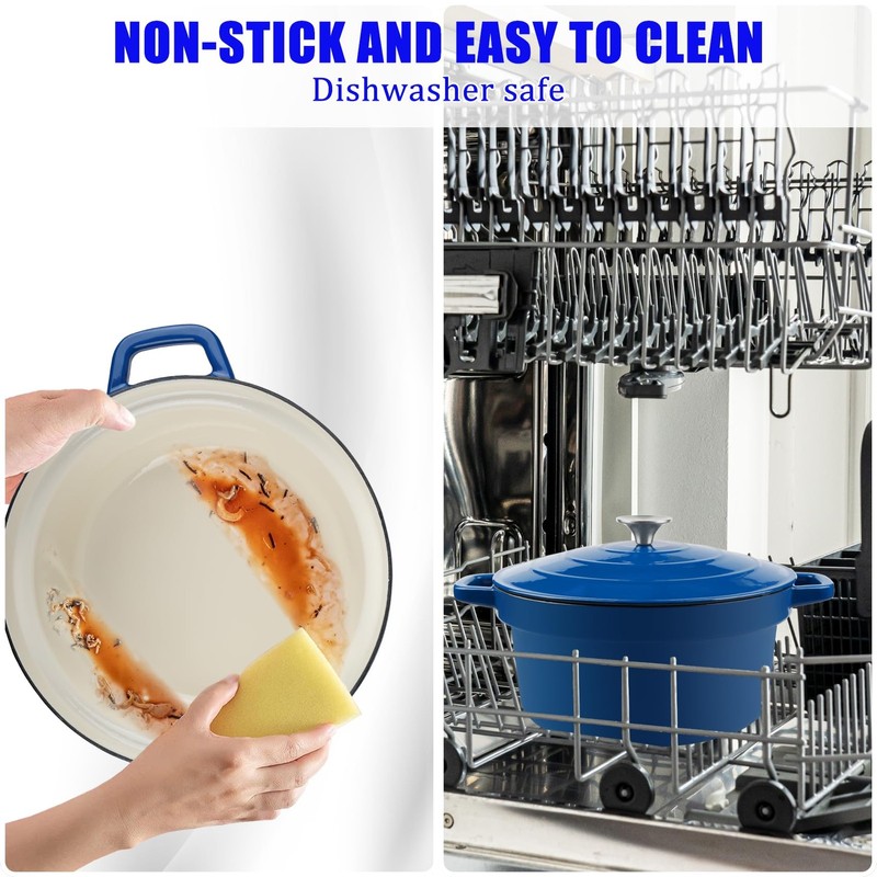 Safe and Healthy: Enamel has no negative impact on health due to its surface coating a non-toxic and harmless enamel glaze, which will not react with food or release harmful substances. Perfect for slow simmering, braising roasts, baking bread, and more