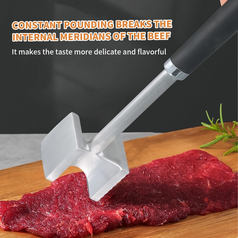 Perfect Kitchen Gift: Multi-functional meat tenderizer is a great kitchen accessory and housewarming gift. Meat tenderizer steak hammer can handle a variety of meats. It not only can enhance the flavor of meat to make delicious dishes, but also can improve cooking skills. Add practicality and functionality to any home chef's toolkit.