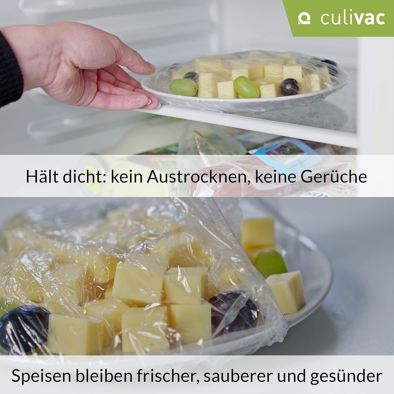 - Reusable, stable and tear-resistant as well as free from bisphenol (BPA). Economical: you throw away less food and consume less plastic than with conventional cling film.