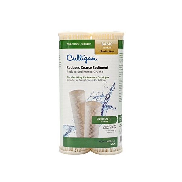 Product Description The S1A Basic Whole House filter helps reduce sediment, rust, scale, dirt course sand and sand from your water supply. This leaves your water visibly cleaner and tasing better. From the Manufacturer The Culligan S1A 2 pack whole house sediment water filter replacement cartridge filters scale, rust particles, sand, dirt, & silt for basic filtration. The filter life is 4 months or 16,000 gallons. The filter has a 20 micron rating, pleated paper, For use with model #HF-150, HF-160, HF-360 and most standard size sediment filters. The filter is NSF Certified and a 2 year warranty. It also includes a change reminder sticker.