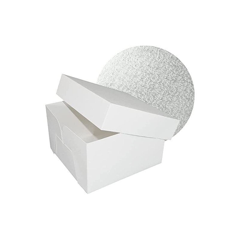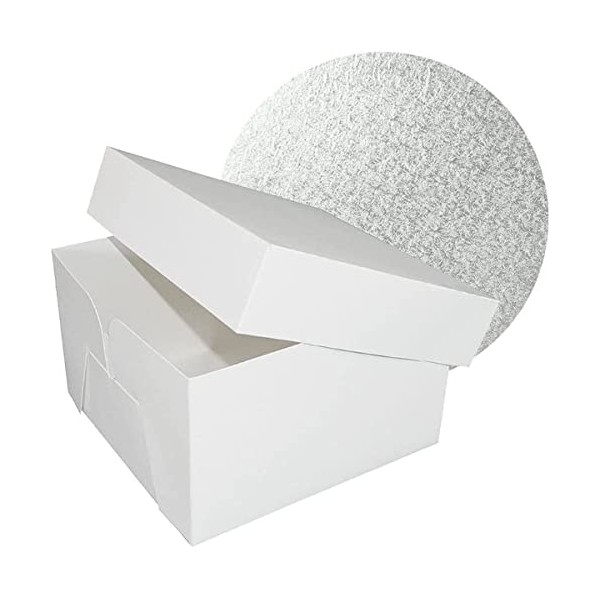 Culpitt 12" Round Silver Cake Drum Board & White Cake Box Combo, 12 Inch Square Box and Matching Cake Circle Set For Cake Transport