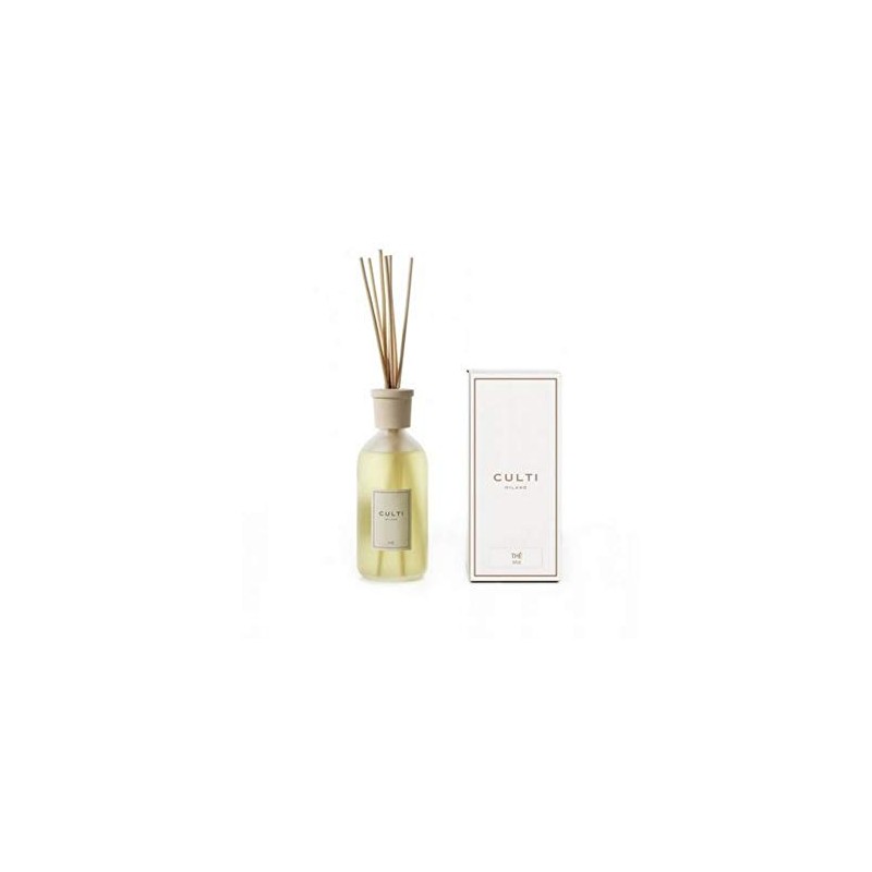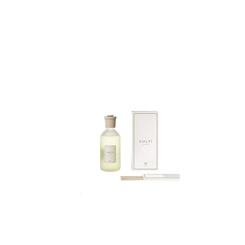 THE - STILE Reed Diffuser Culti Milano 500 ML Features a frosted glass bottle with a cylindrical design and maple wood cap dressed with an ivory label. Culti Milano Reed Diffusers continuously fragrance your room for four months plus. The is a Foral fragrance featuring Bergamot, Sencha Tea Guiacum Wood CULTI MILANO is based on the idea of luxury and a genuine sense of tranquility and well-being. CULTI MILANO perfumery products are characterized by a unique style that focuses on quality, a careful selection of both ingredients and materials and the greatest attention to detail, making it possible to personalize both homes and working environments in a refined and sober style.
