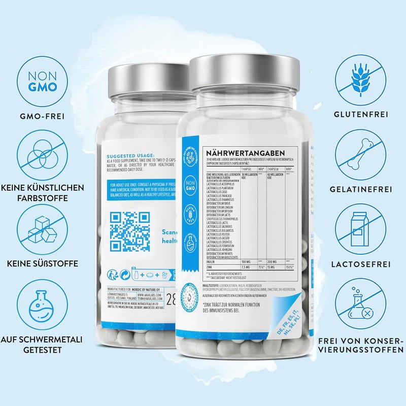 - Carefully designed – attention to detail is in Aava’s blood. Our Nordic influences formula contains 15 carefully selected strains of bacteria, including Lactobacillus Acidophilus and Bifidobacteria. Each capsule holds at least 30 million CBE and one bottle is sufficient for 2 months with continuous use. And all this with our patented release method.