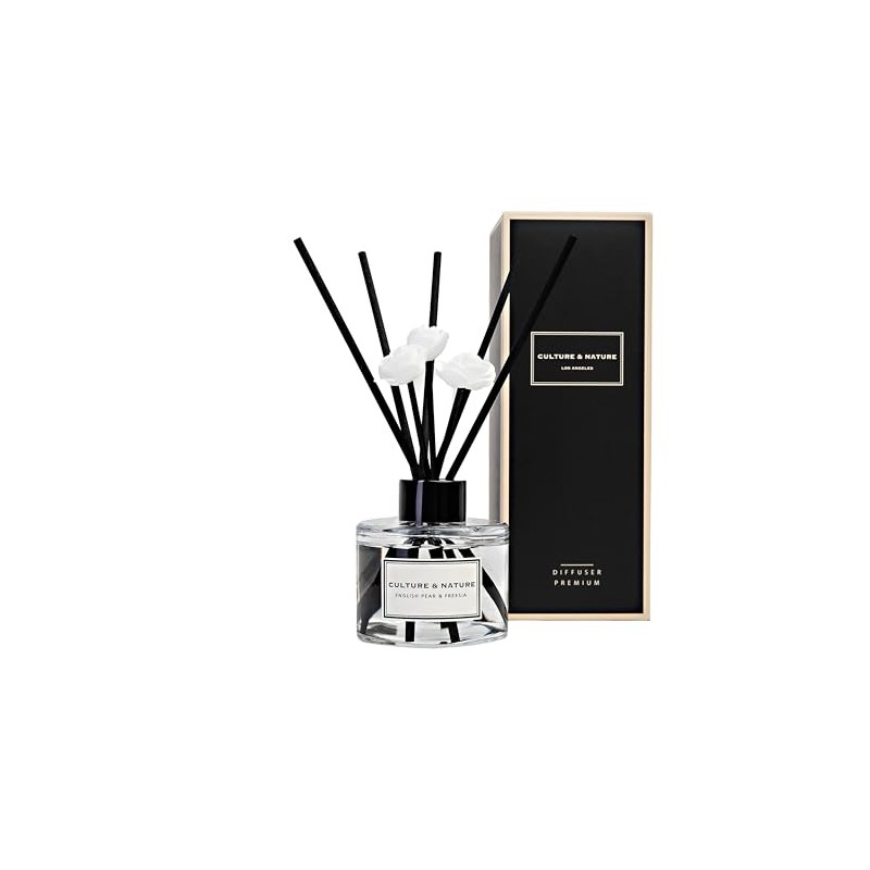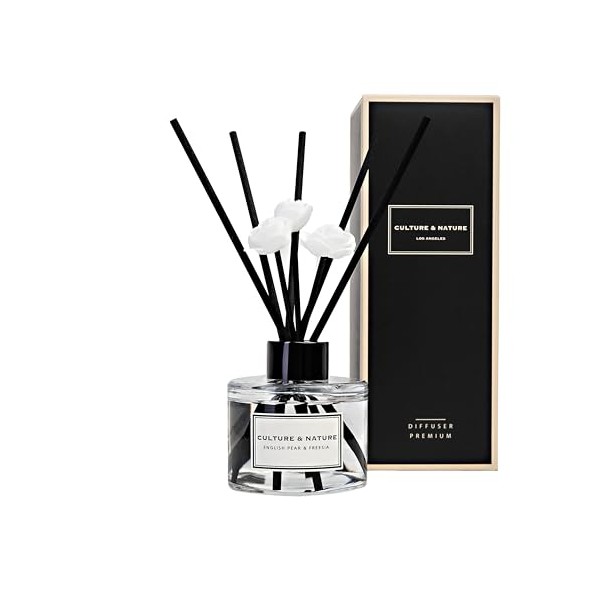 CULTURE & NATURE Reed Diffuser Set 4oz (120ml) English Pear & Freesia Scented Diffuser with Sticks Home Fragrance Reed Diffuser for Bathroom Shelf Decor