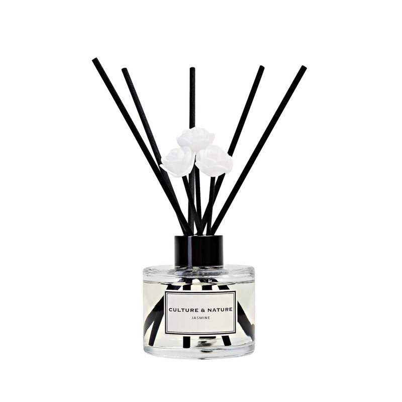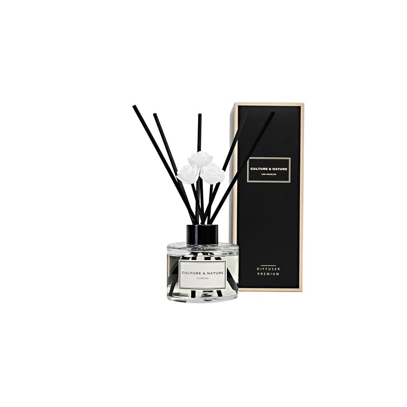 CULTURE & NATURE Reed Diffuser Set 4oz (120ml) Jasmine Scented Diffuser with Sticks Home Fragrance Reed Diffuser for Bathroom Shelf Decor