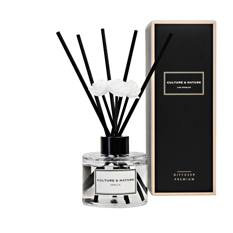 CULTURE & NATURE Reed Diffuser Set 4oz (120ml) Vanilla Scented Diffuser with Sticks Home Fragrance Reed Diffuser for Bathroom Shelf Decor