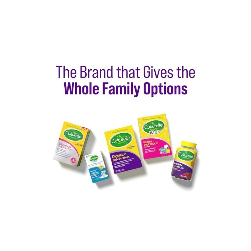 Culturelle Probiotics ProductsDesigned to promote ongoing digestive and immune health as well as everyday wellness for every member of the family, all products in our line-up feature Lactobacillus rhamnosus GG (LGG), the #1 Clinically Studied Probiotic.*?xplore Our Wide Range of Probiotic ProductsDigestive HealthCulturelle Digestive Health Daily Probiotic Capsules supplement contains naturally sourced ingredients that work with your body to support digestive health.* Ingredients like the proven probiotic strain, Lactobacillus rhamnosus GG (LGG), are shown to help your digestive system work better.*Pro-WellMake good choices today for tomorrow by supporting your natural immune defenses. Taking a Culturelle probiotic for everyday wellness gives you a choice to help promote your daily health and wellness routine.*KidsWhen your kids have occasional tummy troubles or when you just want to help keep them healthy, reach for the children's probiotic brand most recommended by Pediatricians.??Our line-up of safe probiotic supplements can help keep your little ones feeling their best.*BabyYour baby's first two years are critical in building a strong foundation for a lifetime of good health. With safe and gentle products designed to work naturally with your baby's body, Culturelle Baby products help promote your baby's developing digestive and immune systems, supporting your baby for the best possible start.*Important informationStore Culturelle in a cool, dry place away from direct sunlight. Keep out of reach of children. Inform a healthcare professional before starting any dietary supplement, particularly if there is a known immune-compromised condition.?ased on studies with Lactobacillus rhamnosus GG for a range of benefits throughout the lifespan.? Based on the number of Lactobacillus rhamnosus GG clinical studies, as of May 2018? Meets the FDA's guidelines for gluten-free* These statements have not been evaluated by the Food and Drug Administration. This product is not intended to diagnose, treat, cure, or prevent any disease.