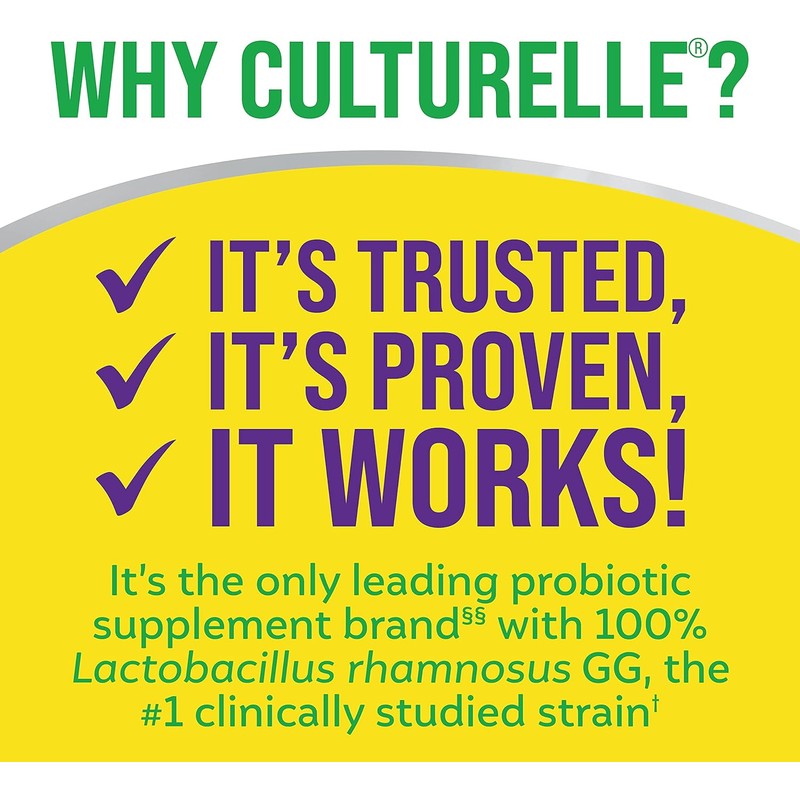 - PROVEN EFFECTIVE STRAIN: Culturelle Pro Strength Daily Probiotics for Men & Women are formulated with the clinically studied probiotic strain, Lactobacillus rhamnosus GG which has also been demonstrated to survive harsh stomach acids to get the probiotics where they’re needed in the intestines