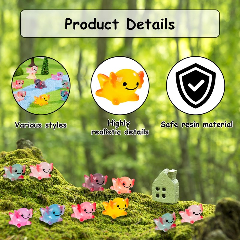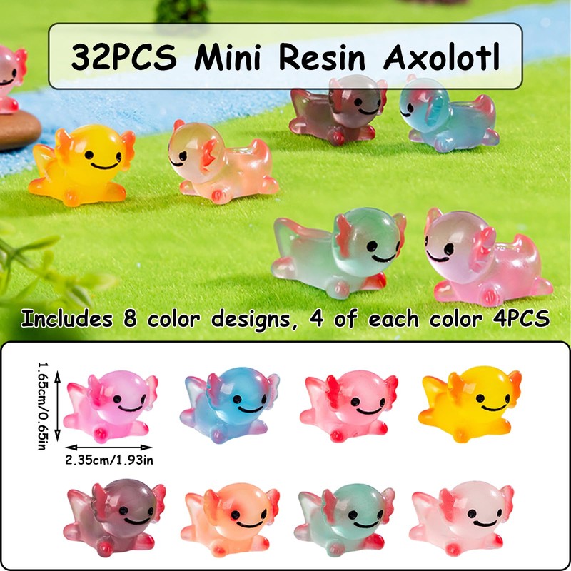 - Mini Axolotl Set: You will get 32 mini resin salamanders in 8 colors, four of each color, sufficient quantity and variety of colors to meet your various creative and decorative needs. Tips: This product is only suitable for people over six years old