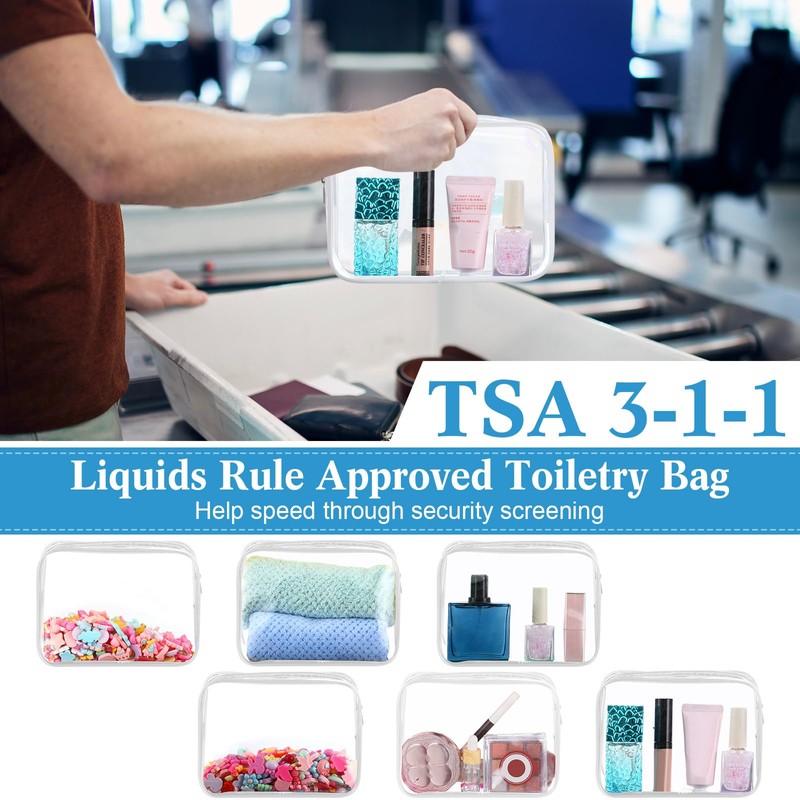 - Easy to Carry Size: approx. 7.08 x 5.51 x 1.57 inches clear travel bags for toiletries strictly follows TSA liquids rule for bag of all airlines, so you can easily and quickly pass through security screening with it in the airport; The quantity is sufficient, 60 pcs in total