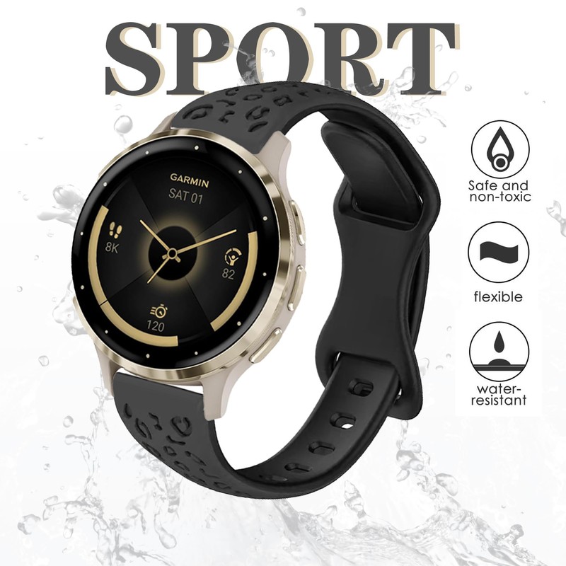CUNUJIX Leopard Engraved Slim Silicone Watch Bands Compatible with Garmin Ven...