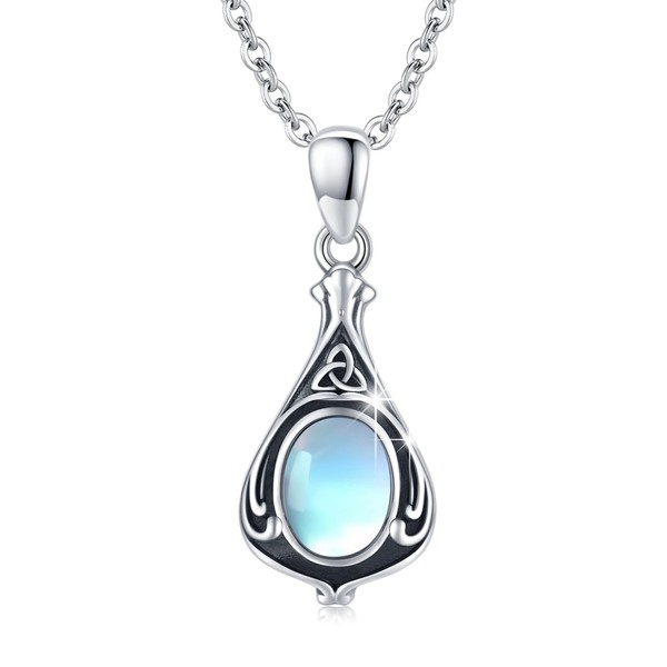 - CUOKA MIRACLE Moonstone Necklace for Girls 925 Sterling Silver Celtic Irish Drop Pendant Moonstone Jewelry for Women