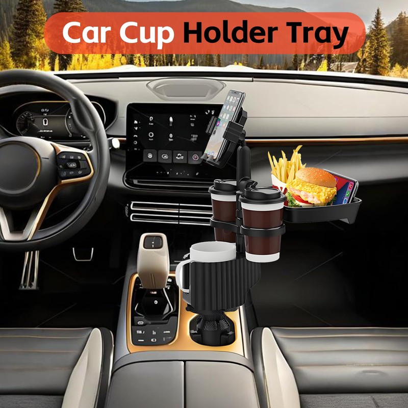 Cup Holder Expander, 6-in-1 Car Cup Holder with Phone Slot Food Tray Table 360° Rotation 3 Cup Holders, Adjustable Base Phone Mount for Automotive Consoles of Organizers Road Trip Essentials
