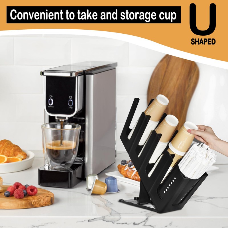 - --Convenient:The coffee cup organizer with U-shaped notch makes it easier to take and storage the cup.This coffee cup organizer is pretty big,dimensions are 17.3''L x 8.9''H x 4.6''W