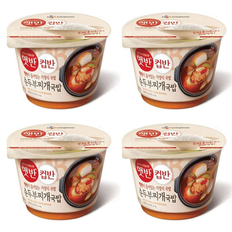Cupbahn Korean Pre-Cooked Meal with White Rice - 25 Taste by Hetbahn 컵반 햇반 (Soft Tofu Stew, 4 Bowls)
