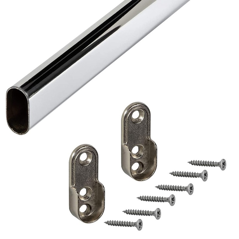- Clothes rail particularly easy and easy to assemble, renew or retrofit – steel clothes rail set with clothes rail brackets oval for wardrobes, hallways, laundry rooms, wardrobes, niches and much more.