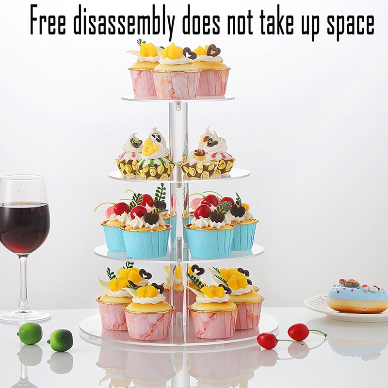 Cupcake Stand with Base, 4-Tier Circular Acrylic Cupcake Display Stand Desser...