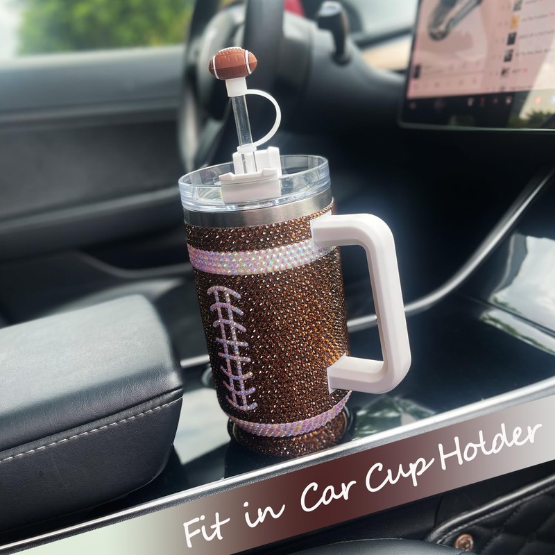 Cupcupmore 40oz America Football Bling Rhinestone Stainless Steel Tumbler Glitter Vacuum Insulated Water Bottle with Straw & Lid &Handle,Thermos for Hot & Cold Drinks,Sparkle Car Cup Holder,Coffee